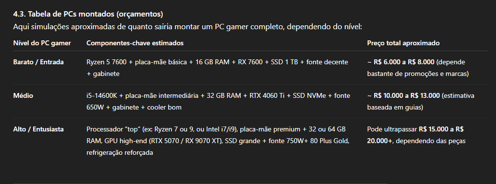 Está pensando em montar um PC gamer no fim do ano? Confira nosso guia completo para escolher processador, placa de vídeo e orçamento ideal — com tabelas e dicas para economizar.